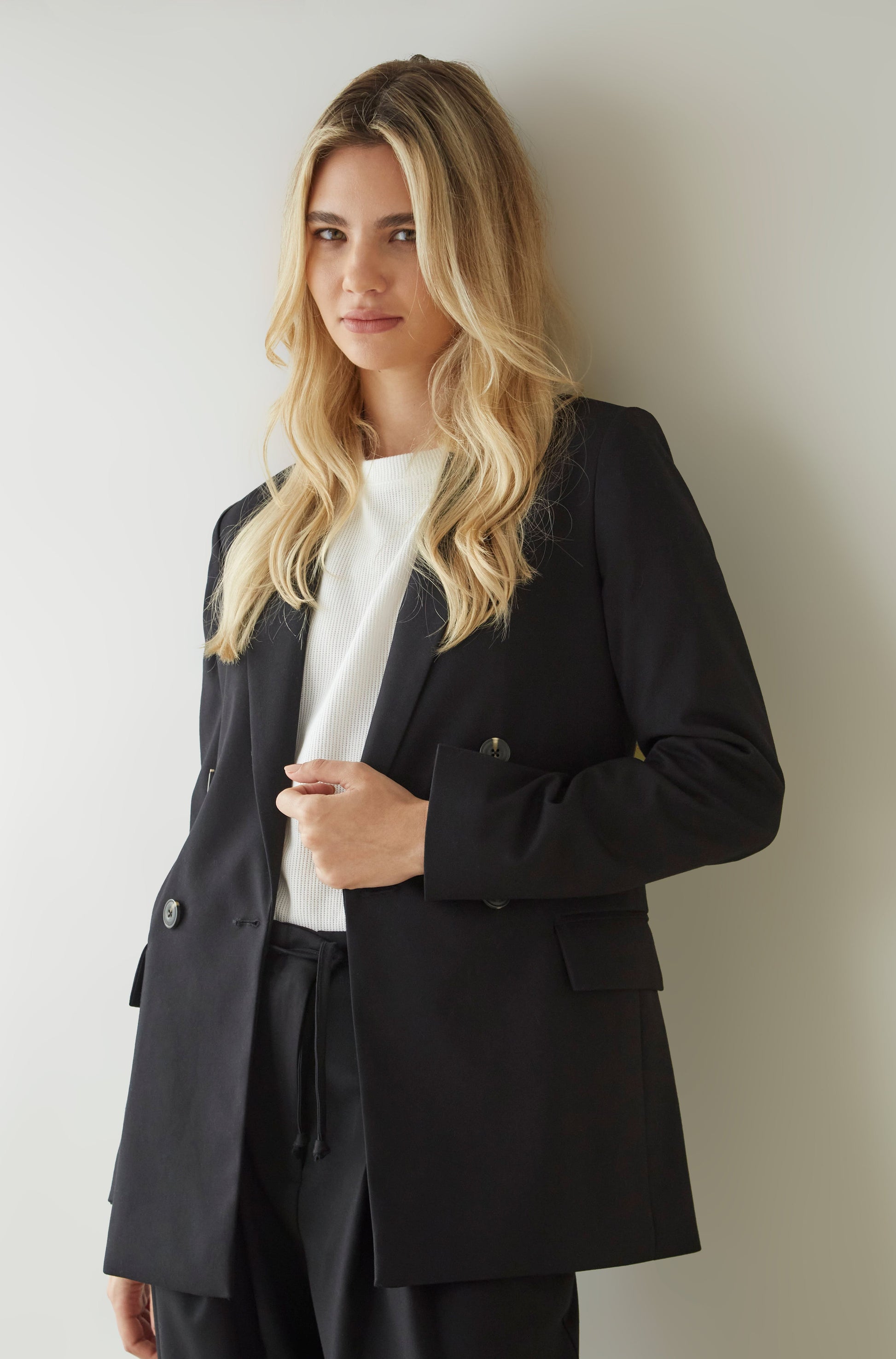 Blazer de cuello y solapa manga larga con bolsillos en delantero.
