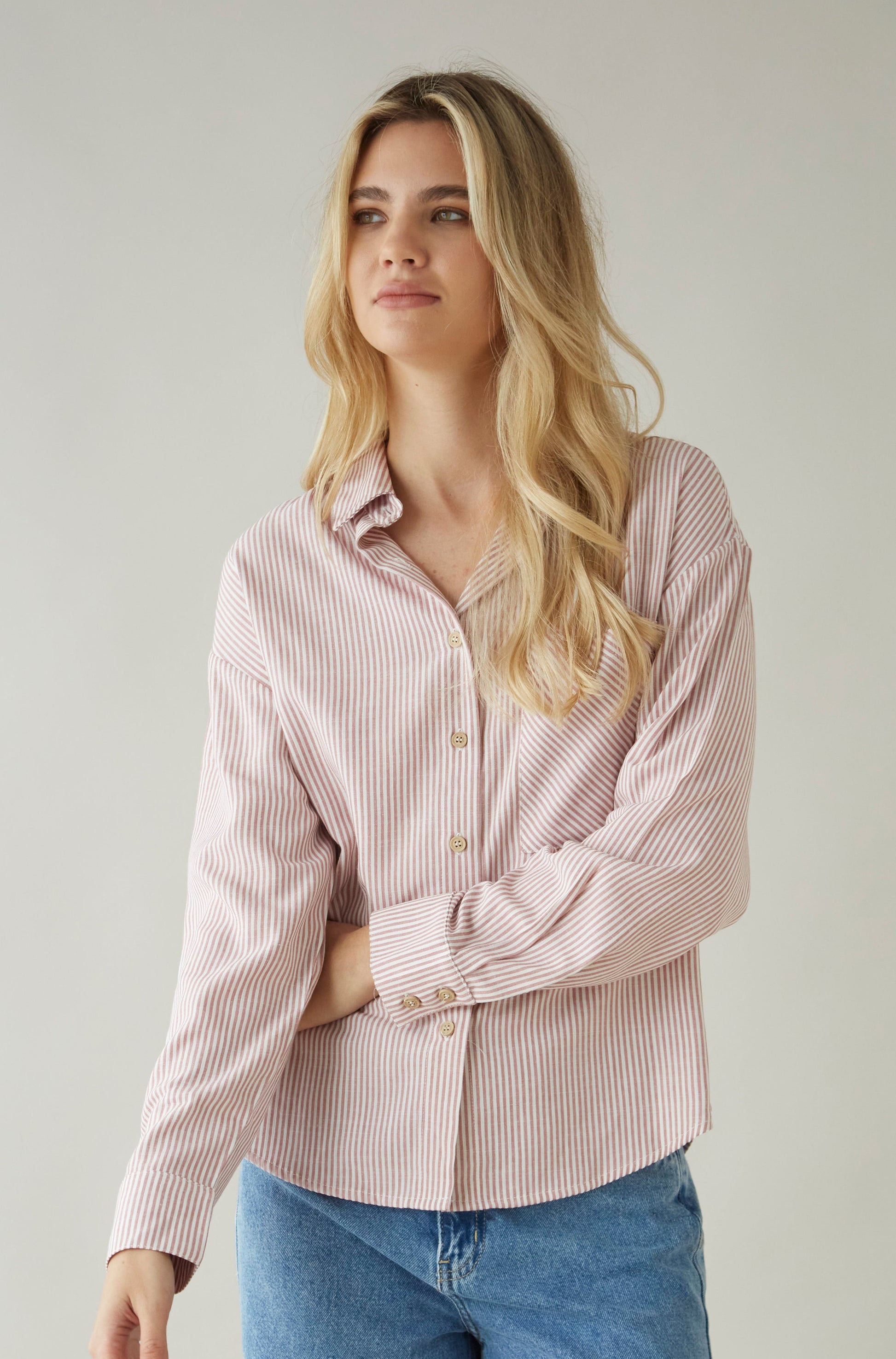 Blusa de cuello y solapa manga larga con un bolsillo en el delantero.