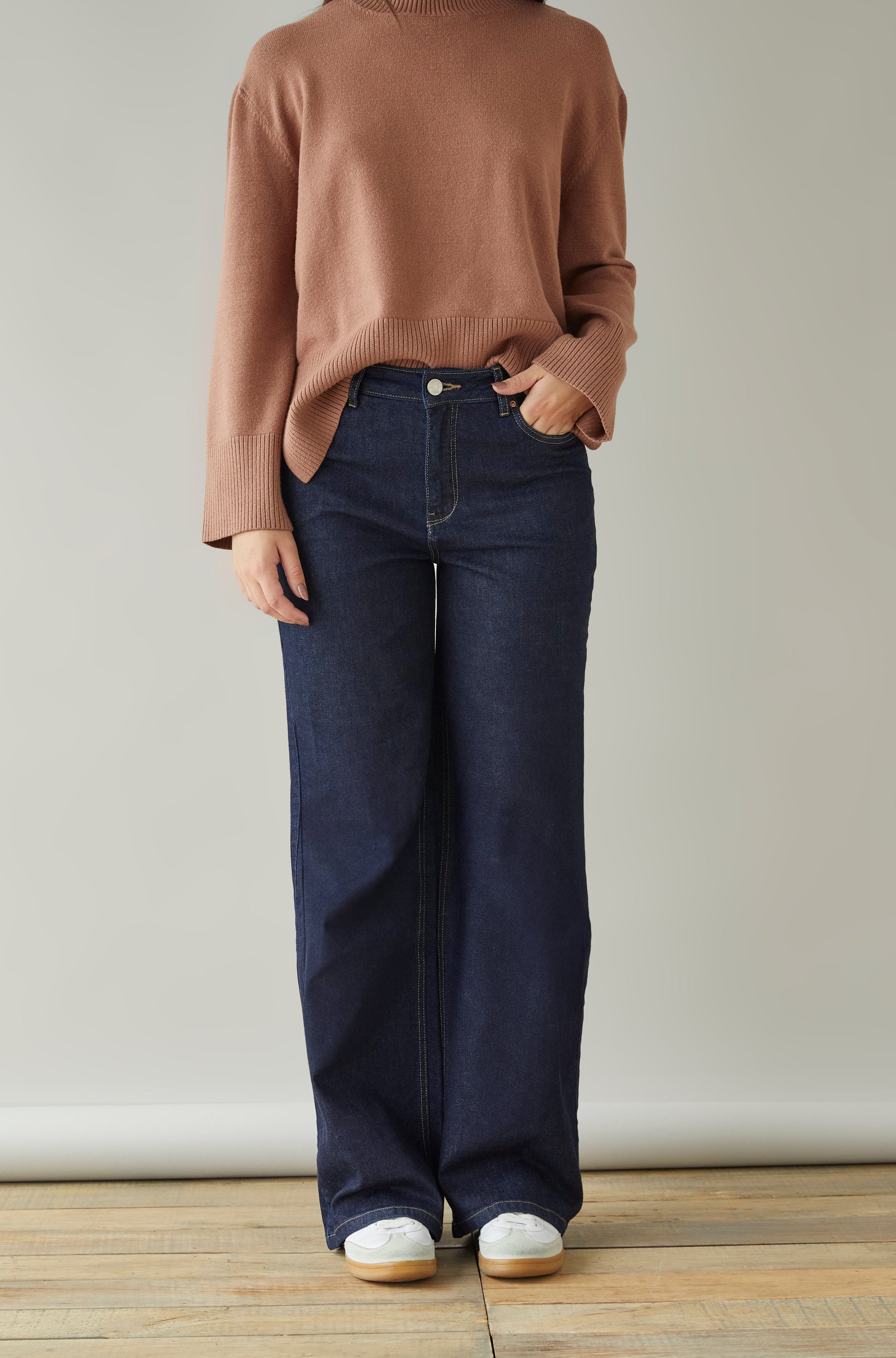 Jean 5 bolsillos wide leg de tiro alto.