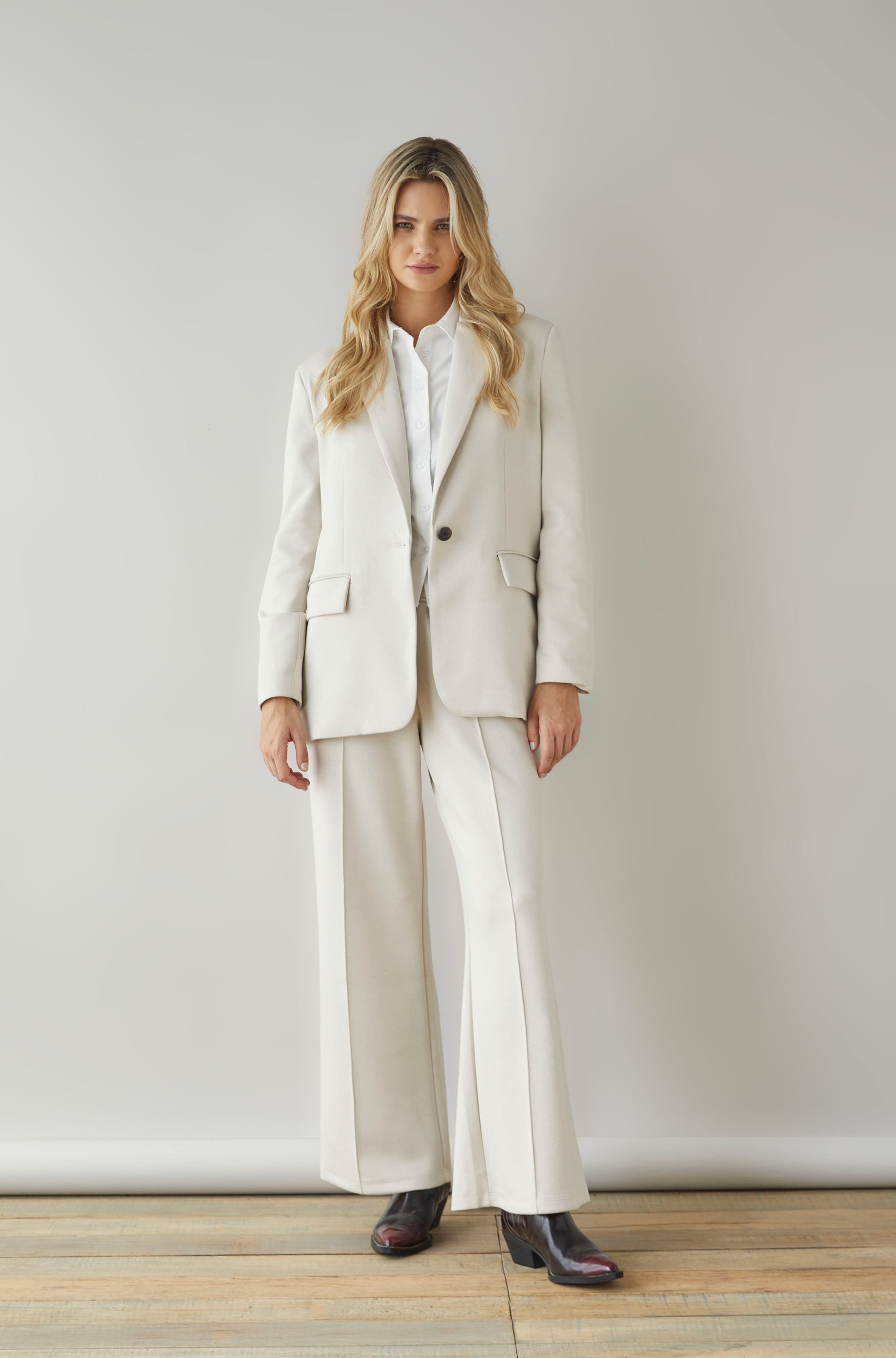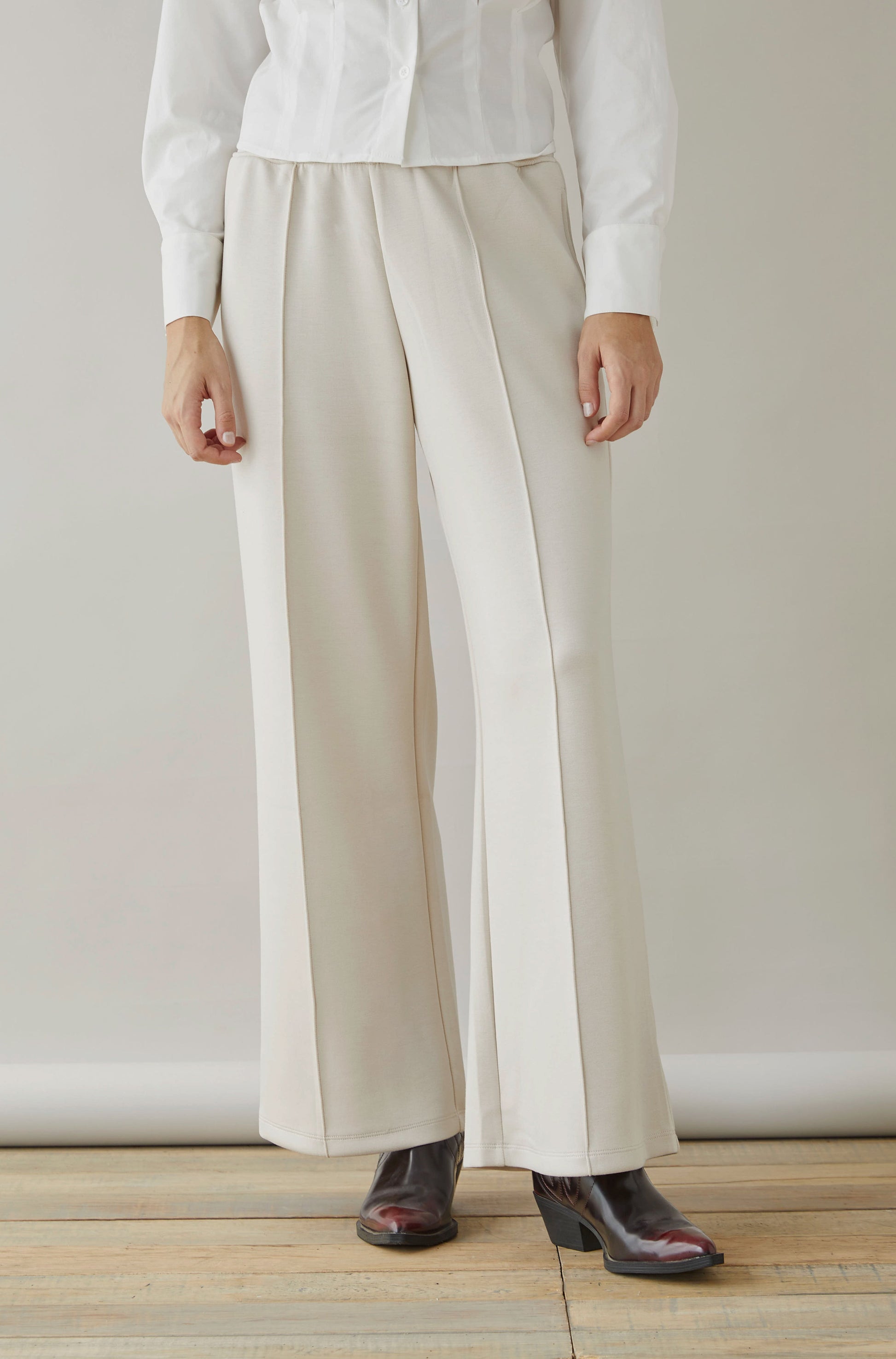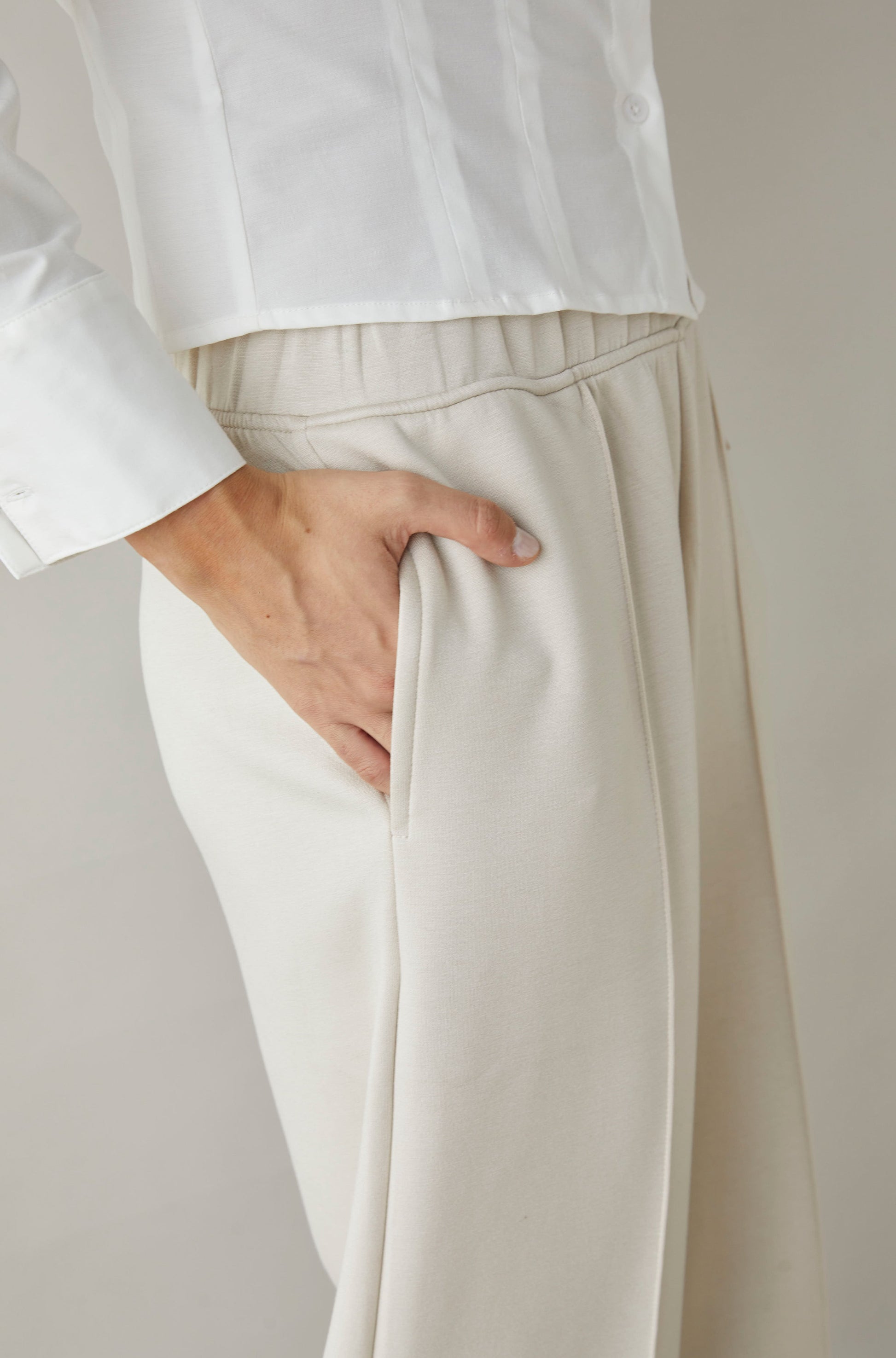 Pantalón wide leg con bolsillos y cintura elasticada.